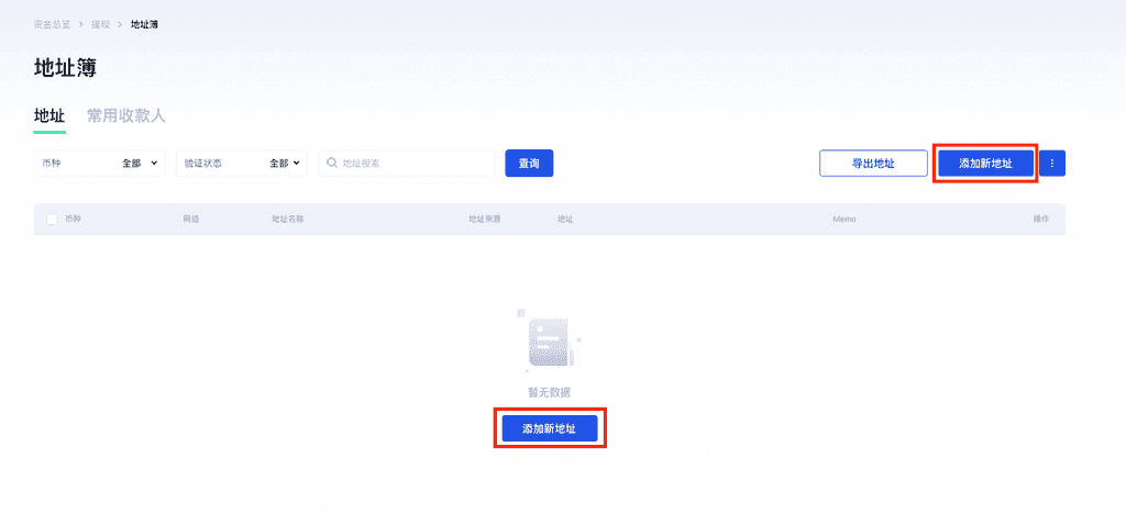 进入提现页面后,在任意币种提现页面,提现页面右上角或者提现地址上方点击“地址簿”。