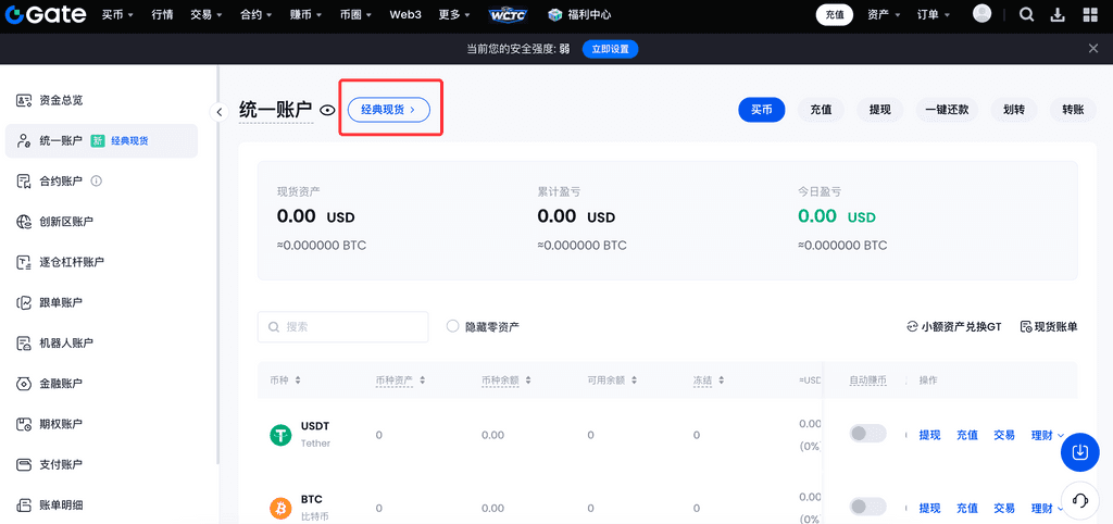 Step 1: 进入统一账户,点击图片中圈出按钮