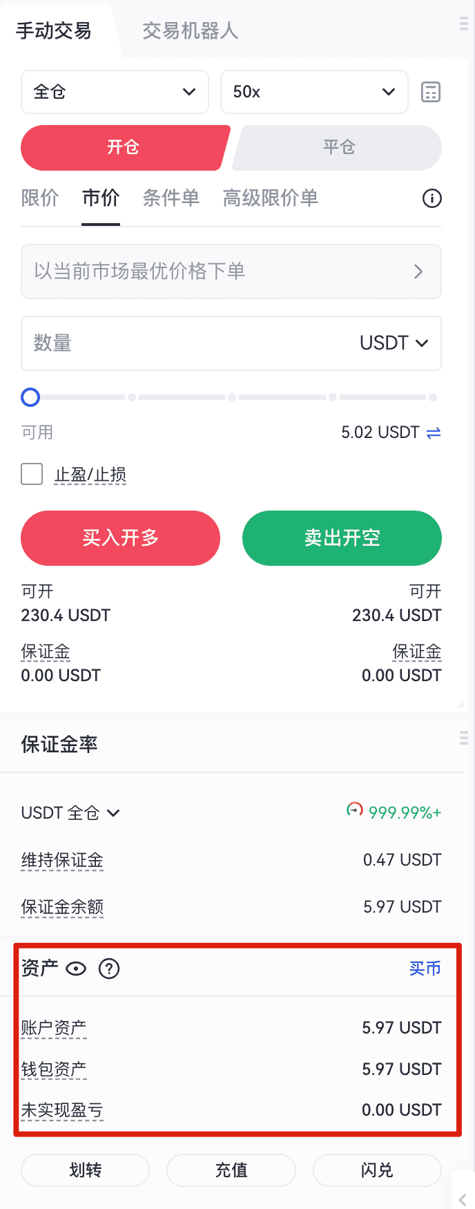 - 也可以通过顶部导航栏右上角的“资产” > “合约账户”查看您的资金。