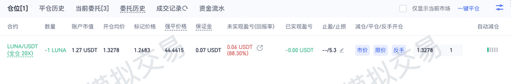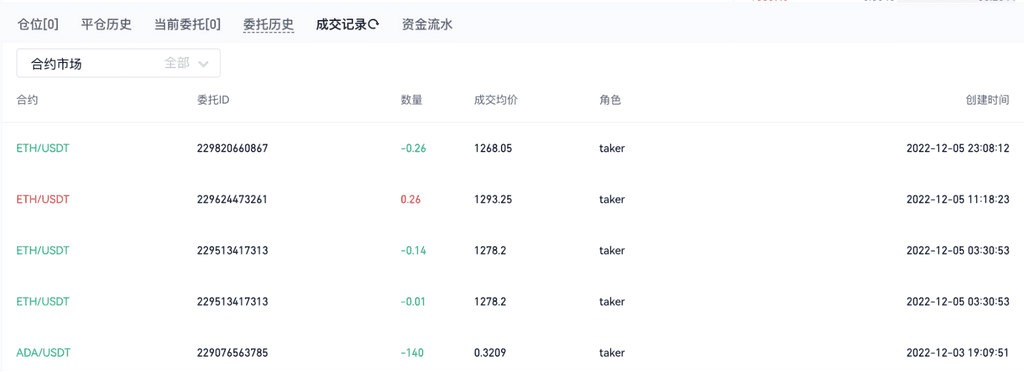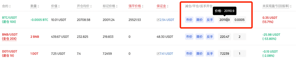 平仓:用户可选择市价单或限价单来平仓,订单成交即完成平仓。