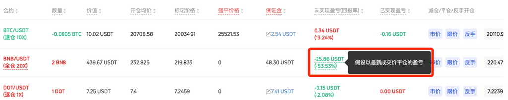尽管如此,用户平仓后的实际结算额将使用最新成交价计算的未实现盈亏。请注意,仓位盈亏是根据某一时刻最新成交价估算所得,不包括持仓期间可能产生或收取的任何手续费或资金费用。