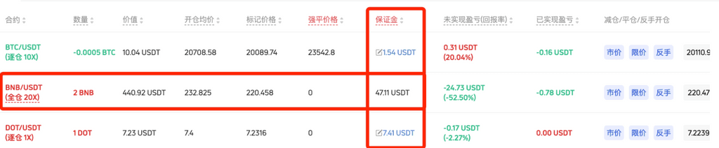 在逐仓模式下,仓位保证金为固定值,也是用户所需承担的最大损失。开始为起始保证金,后续可以通过调整杠杆、风险限额、增加减少保证金等方式来改变起始保证金数量。