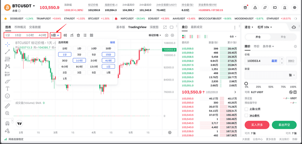 用户可以在此对交易图表所显示的时间周期进行设置。
