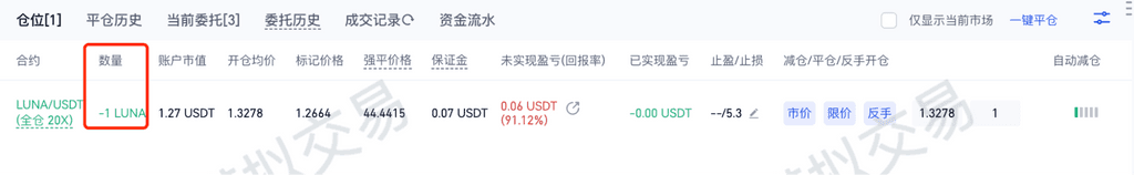 数量指用户委托的合约订单量,正数表示多仓,负数表示空仓。数量单位可以在合约交易页面右上角的合约设置内切换为张或币种。
