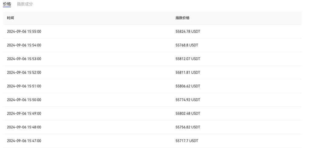 指数价格由三大关键变量决定:现行报价、USDT交易对等值价格和实时权重。现行报价是当前市场上每个交易对的最新价格,USDT 交易对等值价格是将其他交易对的价格转换为 USDT 计价的价格,而实时权重则根据风控规则实时调整。