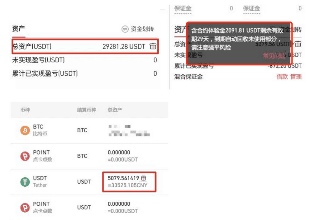 3)用户可在合约交易页面-资产或钱包-合约账户内查看自己已领取的合约体验金;