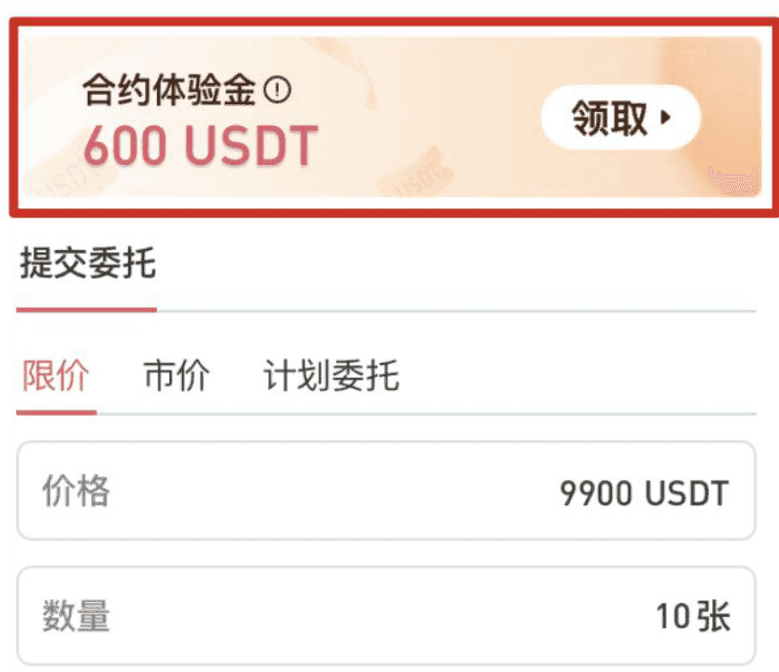 2)用户通过指定运营活动获得合约体验金,可在合约交易区进行领取;