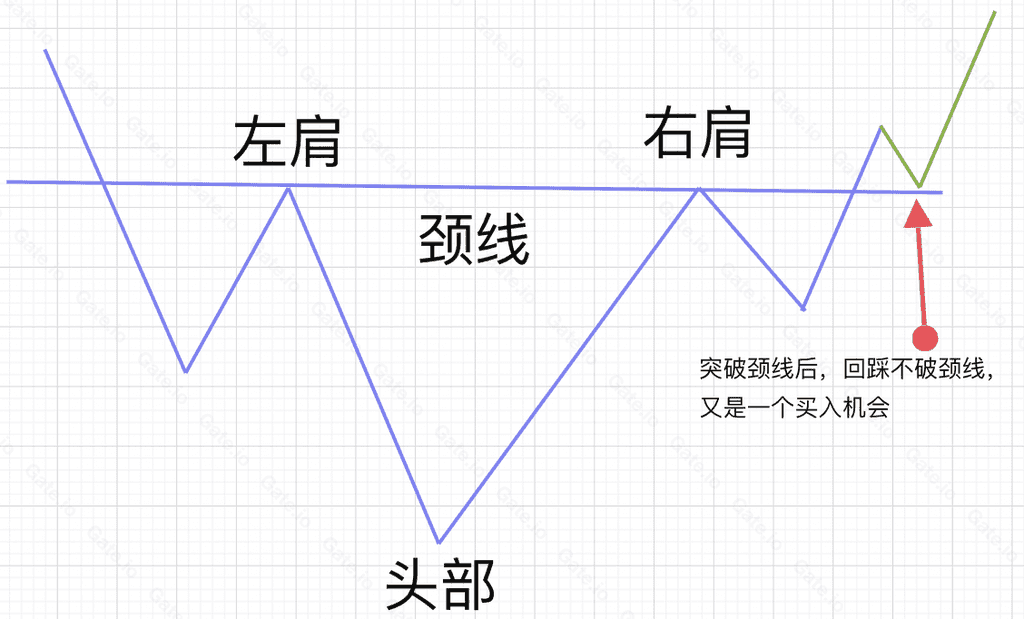 2、头肩底买入机会二:突破颈线后,技术性回踩颈线