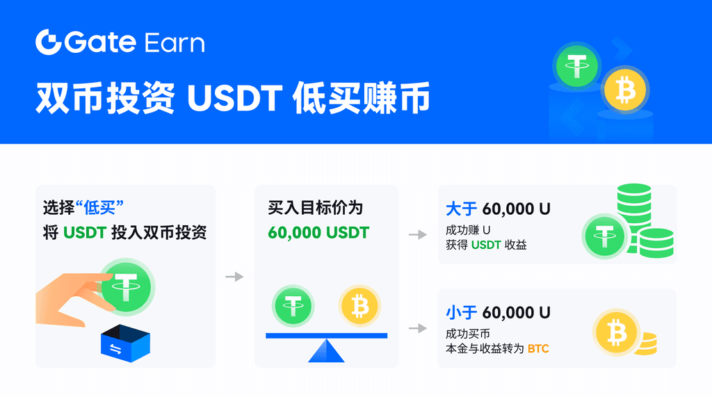 BTC 结算价格 > $60,000:赚币成功,返还 USDT本金与这段时间的 USDT 利息收益。