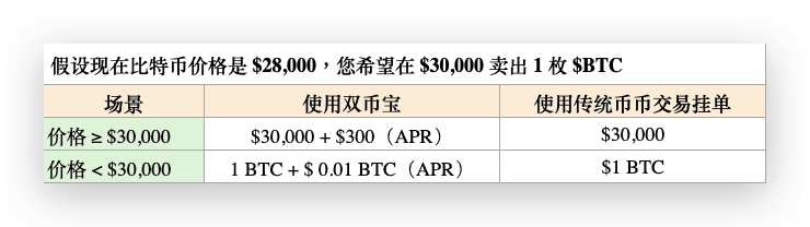 如果结算价格 ≥ $30,000 ,在止盈成功实现获利的同时,还可以获得额外 $USDT 本位收益;若是结算价格 < $30,000,虽然未达止盈条件,但能获得额外 $BTC 收益!