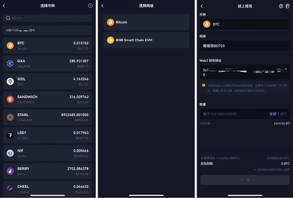 从 Gate 账户转账至 Web3 钱包