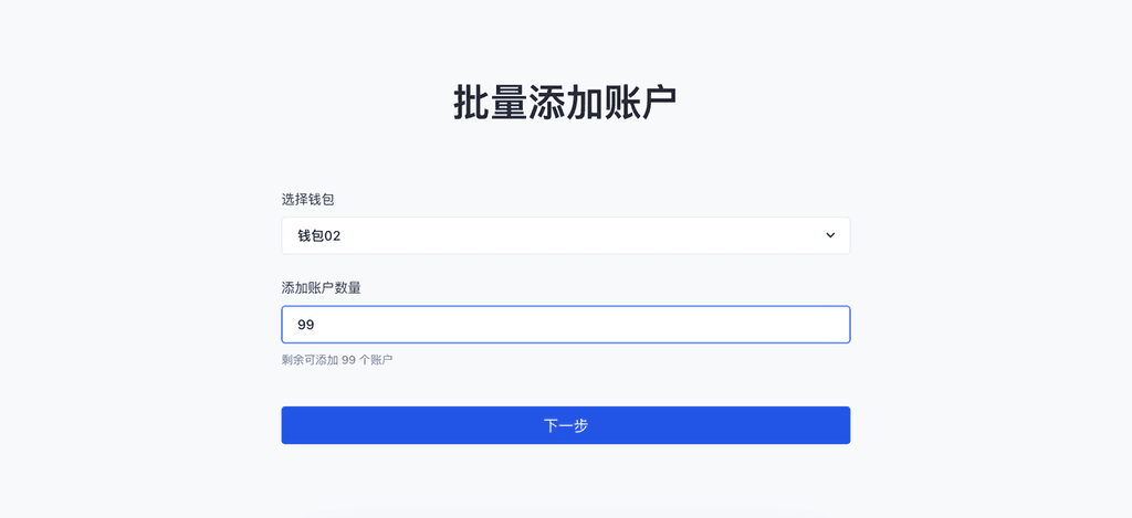 3.点击「批量添加账户」后,选择想要批量添加的钱包,并输入想要添加的地址数