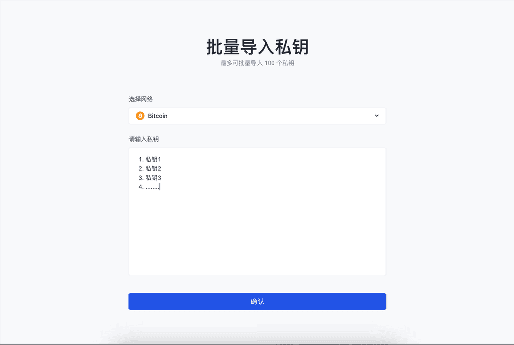2.选择区块链网络,并依次输入您持有的钱包私钥;