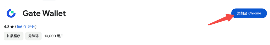 点击链接,进入谷歌商店页面进行Gate Web3钱包插件安装,如下图所示,点击页面右边的“添加至Chrome”按钮。