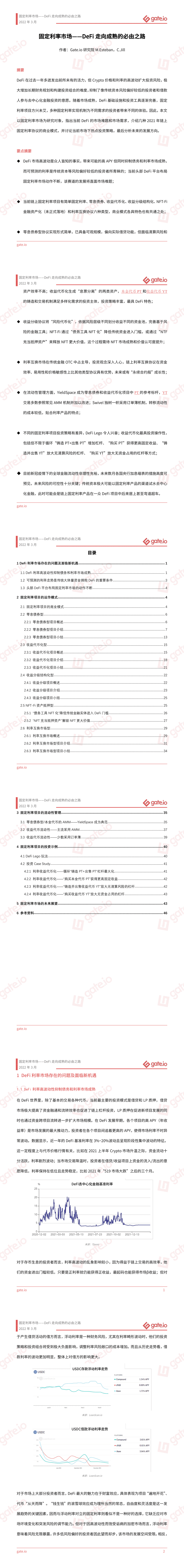 在过去一年多,去中心化金融(DeFi)市场经历了前所未有的活力,但由于加密货币价格和利率的高波动性,投资风险显著增加,导致长期财务规划和投资组合构建的难度加大,尤其抑制了风险偏好较低的传统投资者和借款人参与的意愿,随着市场的逐渐成熟,DeFi基础设施和投资工具不断完善,固定利率项目逐渐崭露头角,多种固定利率实现机制为不同需求的投资者提供了多样化的体验,本文重点探讨当前DeFi市场的难题和需求,分析2021年链上固定利率协议的商业模式,并探讨市场热点投资策略,未来发展方向值得关注,零息债券、收益代币化等多种固定利率项目各具特色,且商业模式间有共通之处,尤其是收益代币化项目在灵活性和投资操作性上最为突出,当前全球金融流动性充裕,央行加息缩表的预期将影响未来的风险控制,传统资本可能通过固定利率产品尝试进入DeFi市场,这或将为链上固定利率产品带来新的发展机遇。