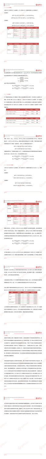 ◆加密期货时间序列不同于传统金融时间序列呈现“尖峰厚尾”性而是近似正态分布,BTC期现货价格序列具有长期协整关系,但无显著的Granger因果关系;VECM模型显示,在日级别数据上BTC现货与永续期货无显著领先滞后关系,但与交割期货在趋势性影响下存在10%水平下的显著双向且反向的领先滞后关系,且5%水平下滞后2阶的影响更大;