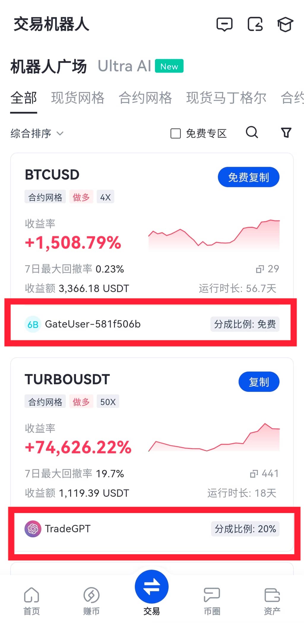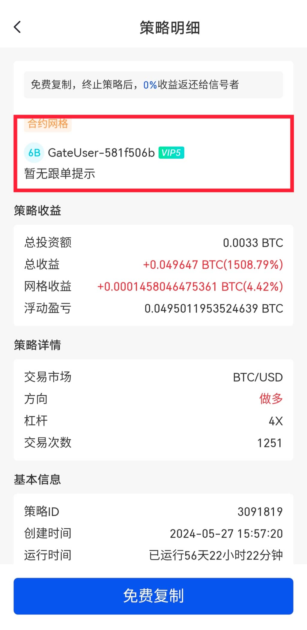*注意:所有策略免费复制,终止策略后,5%收益返还给信号者。