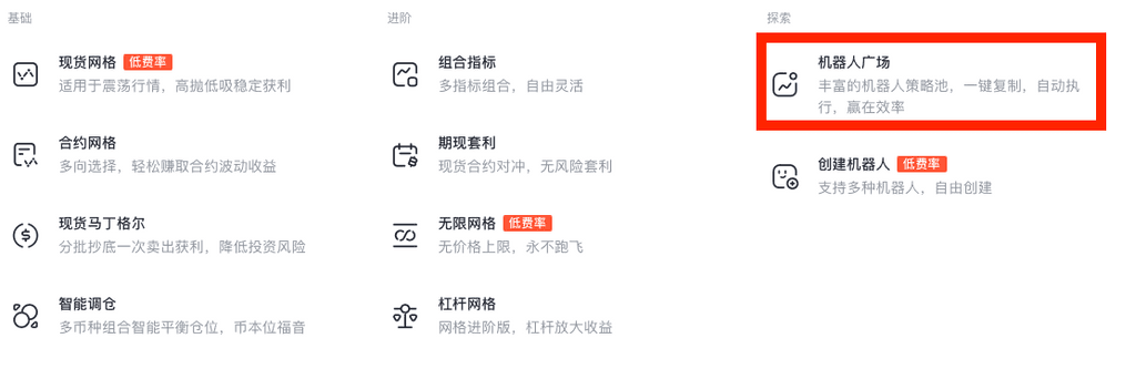 2.跟单创建:如果智能创建未能满足您的需求,可在推荐机器人板块筛选出优质用户,并复制机器人;