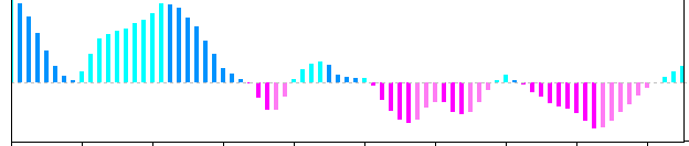 质心移动平均震荡指标的计算类似MACD,使用线性加权移动均线与简单移动平均线之积,在此基础上进行三次平滑,形成最终信号。该指标以零轴为对称轴,与零轴偏离程度越大,说明当前趋势越强烈。