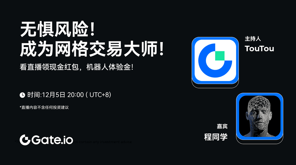 Gate 交易机器人将于12月5日 20:00(UTC+8)开始网格交易直播课第三课-风险管理,市场越波动,收益越丰富!多年网格交易经验讲师手把手教学,新手参与直播间专属活动爆仓包赔,无负担开启第一次网格交易!课堂互动答题,赢取机器人体验金、现金红包等福利!