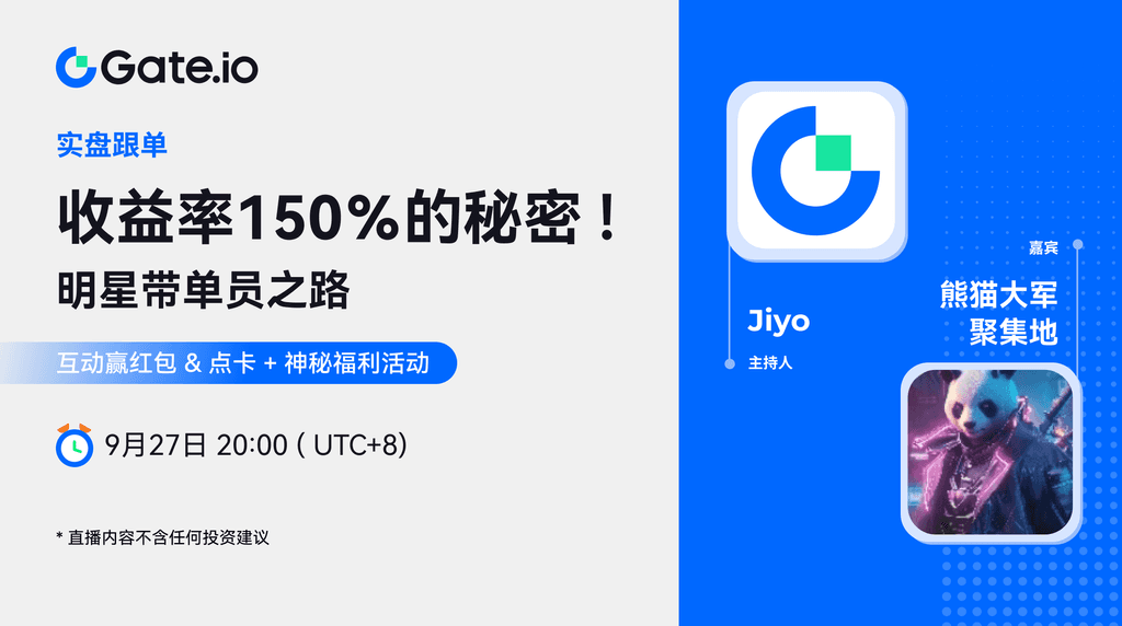 Gate 实盘跟单将于9月27日20:00(UTC+8)举办一场以明星带单员为主题的AMA活动,特邀嘉宾熊猫大军聚集地将分享其带单员成长之路、交易心态及行情分析,参与者可通过直播链接观看并与嘉宾互动,获取红包雨和$10 Gate点卡奖励,此外,新用户在直播当天注册并观看满10分钟可获得VIP+1(7天)奖励,邀请人也可享受同等奖励,活动内容不构成投资建议,嘉宾观点仅为个人意见,注意事项包括需完成KYC2认证,活动最终解释权归Gate所有,欢迎加入官方社群或联系客服咨询,确保不错过此次精彩活动。