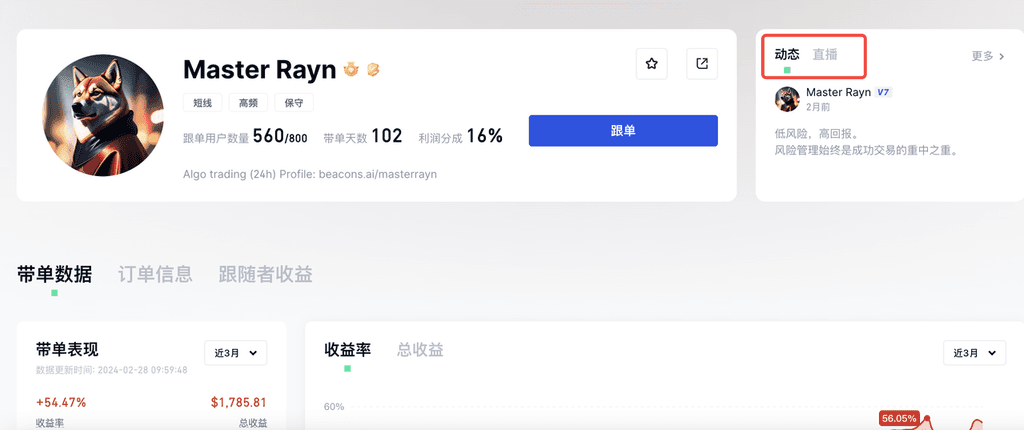 看到带单员有高盈利订单后进行跟单,但是自己没有获取该订单收益,原因在跟单用户看到带单用户的订单时,带单员可能已经完成建仓,跟单者无法穿越过去建立同样的仓位,只能等待下次带单员建仓的机会。