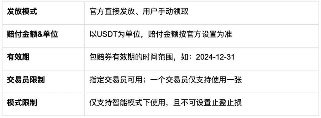 1)跟单包赔券是由官方平台提供,并发放给用户体验合约跟单交易的一种卡券