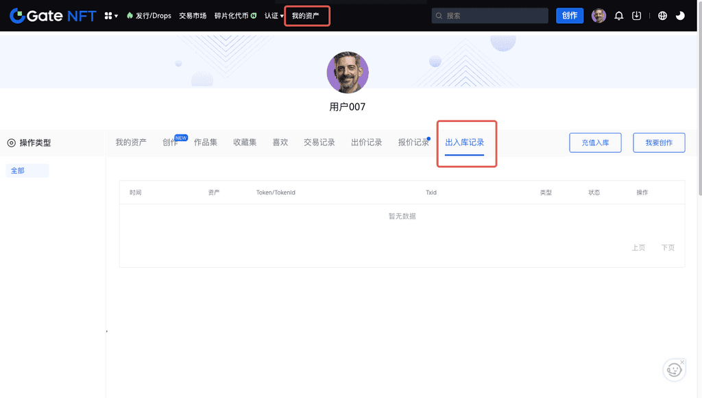 Step 5: 提现完成后,系统会自动确认,可在我的资产页面出入库记录中找到您刚提现出库的 NFT 资产。