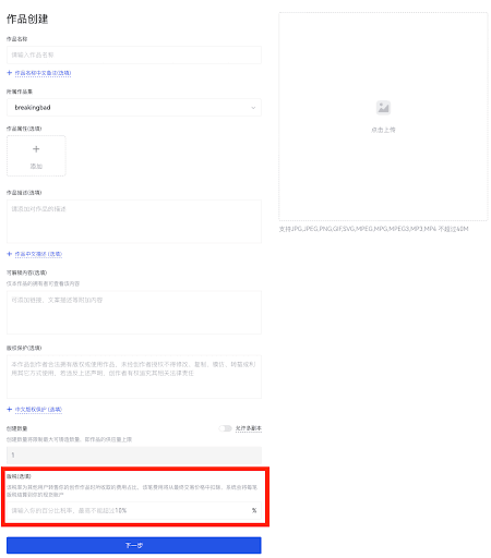 NFT 作品的创作者在创作作品或作品集时,可以自定义 0 - 10% 之间的任何百分比税率。