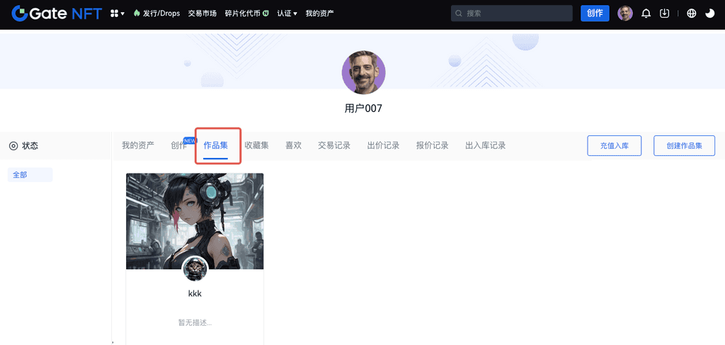 Step 2:在我的资产页面点击进入作品集管理,选择并点击你要查看版税记录的 NFT 作品集。