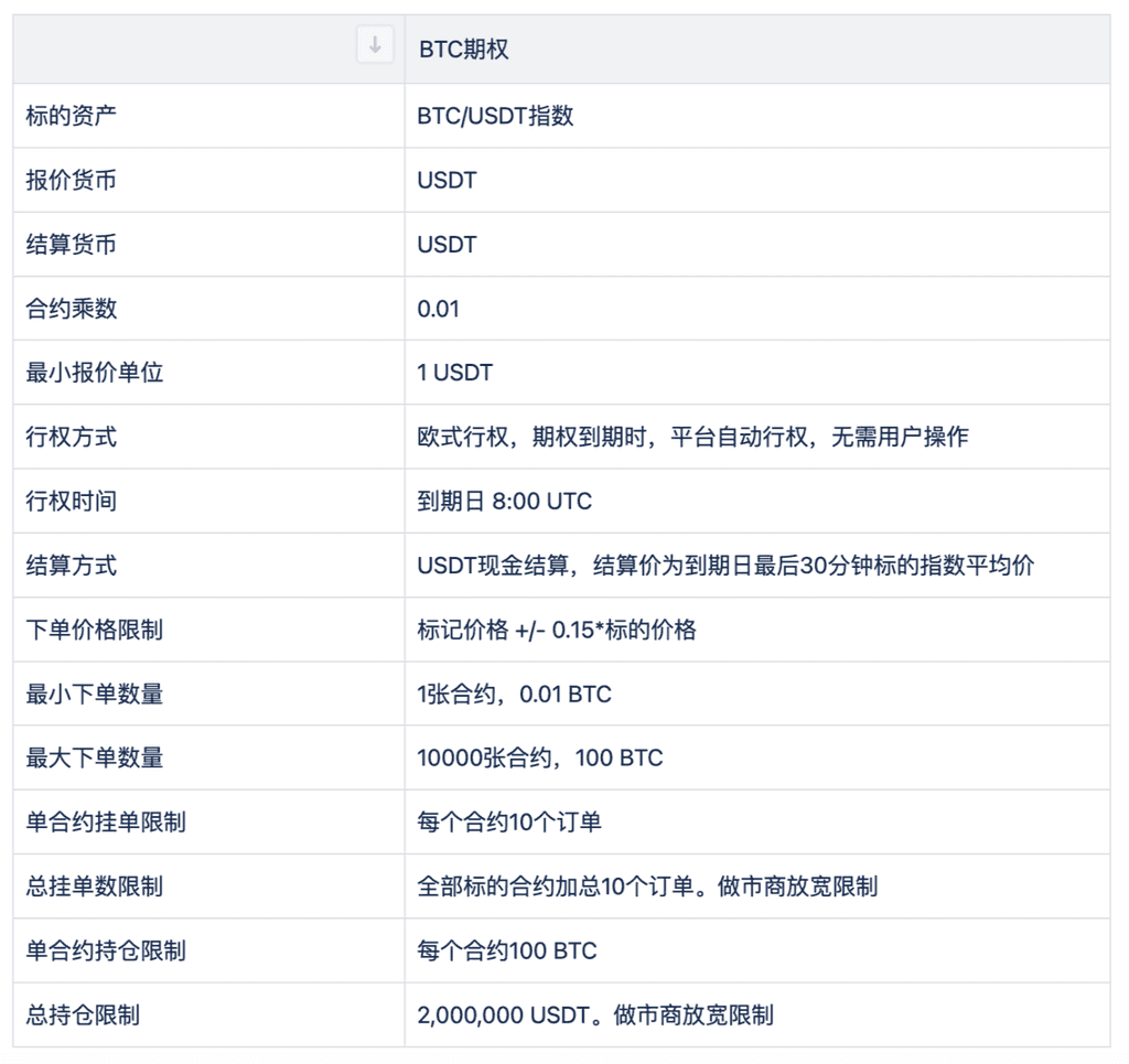 例如:代号为BTCUSDT-250627-18500-C的期权,表示该BTC期权,到期日为2025/06/27,行权价格为18,500 USDT,类型为看涨期权。