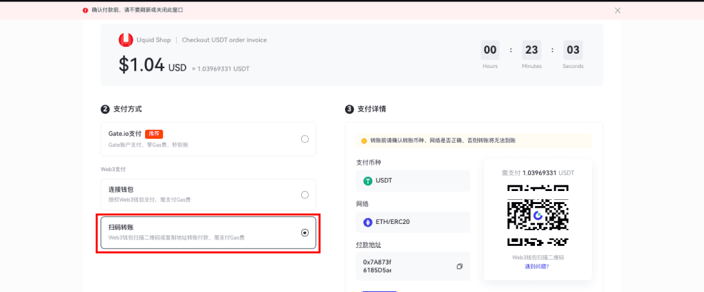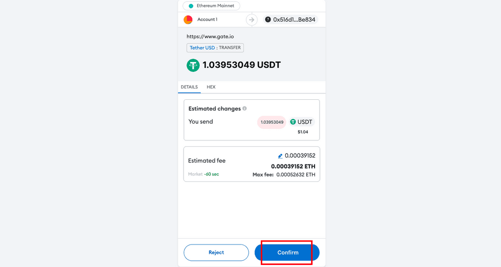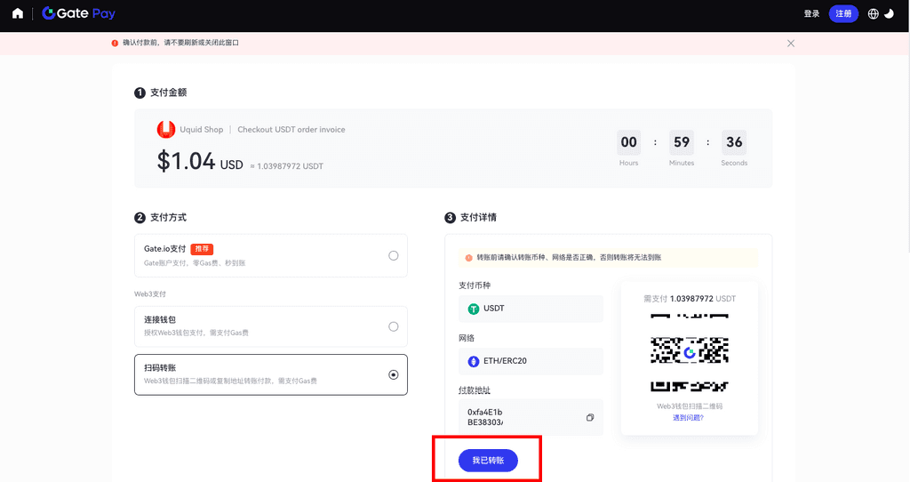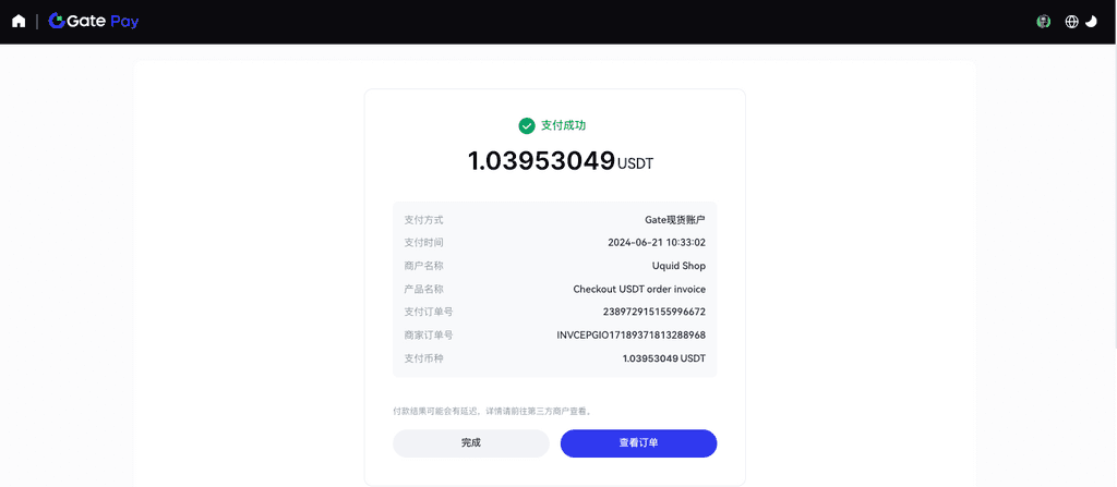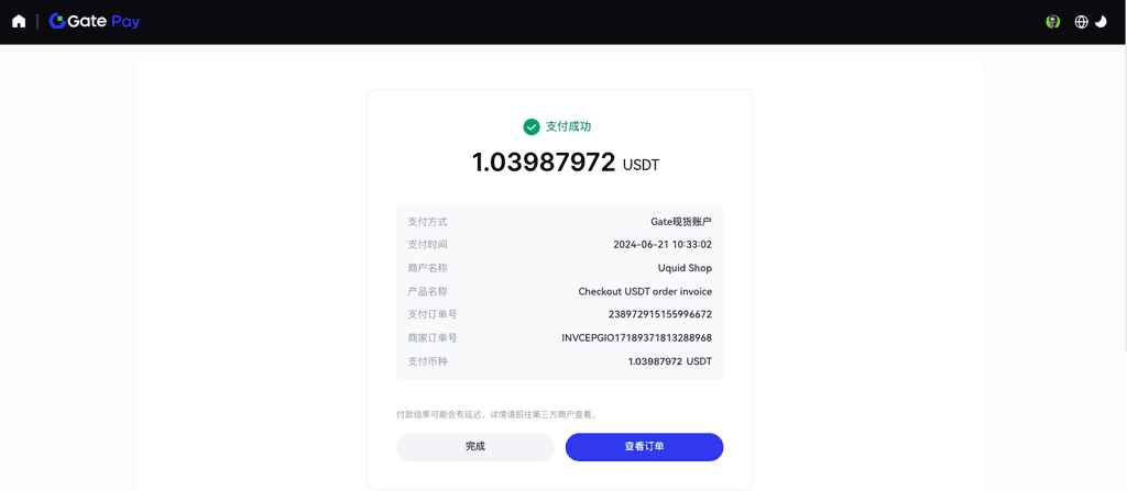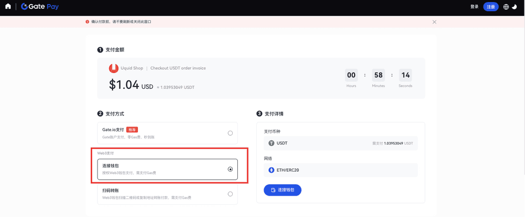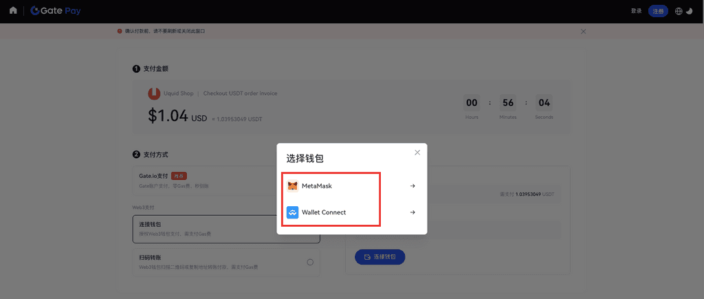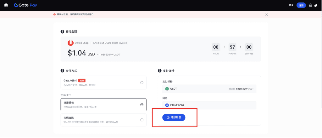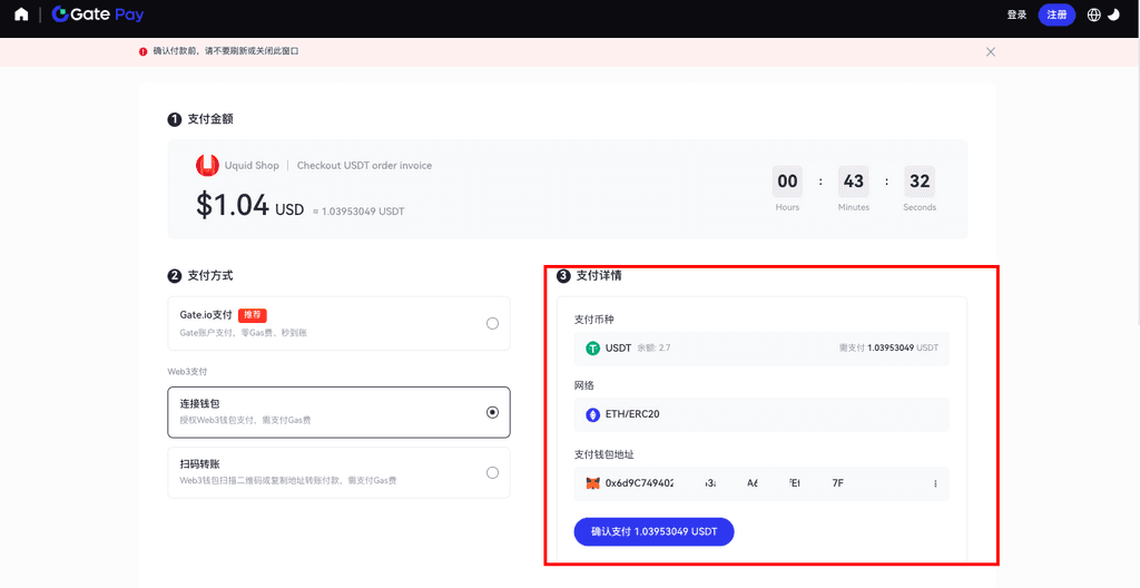 2.3.绑定后,Gate Pay自动识别钱包账户余额、网络情况。点击【确认支付】。