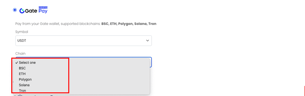 1.在商家结账页面选择可用的加密货币和链。