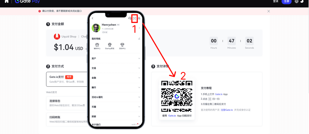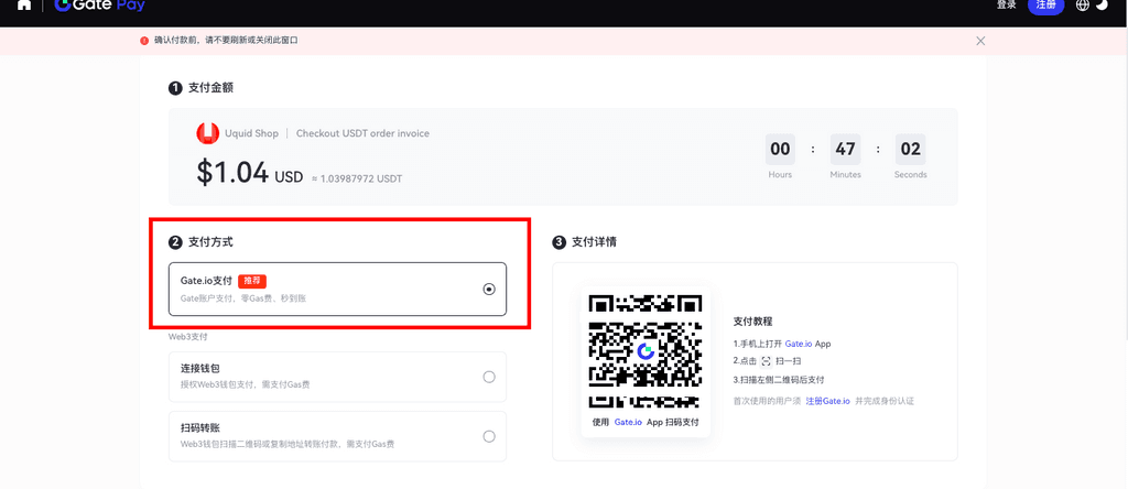 请使用Gate App扫描商家结账页面上的二维码,并确保您的账户有足够的资金来完成支付。