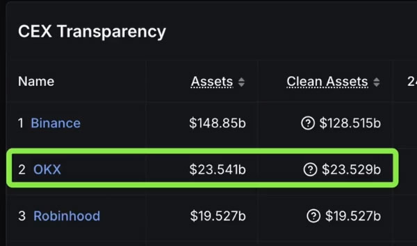 我们在下图可以看到欧易交易所的储备金是全球排名第二的,仅次于币安交易所。这个储备金代表什么呢?储备金的比率越高,相应的这个平台的赔付能力越强,如果出现事情它能够赔的起。