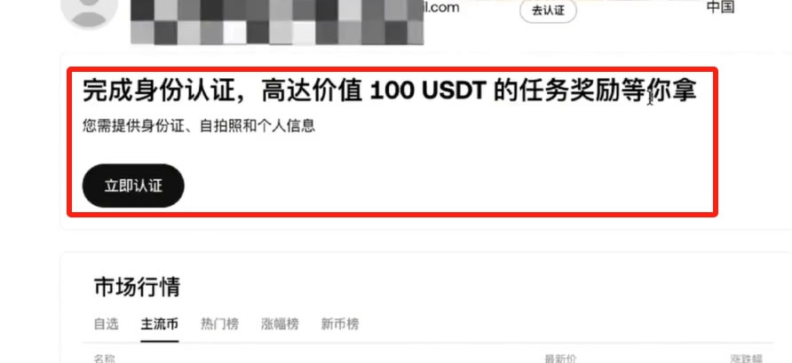 进入到总览,它会提示我们只要我们完成身份认证,就可以获得高达价值100美元的任务奖励。但是这个地方给大家提示一下,至于我们完成之后能够获得多少钱,这个奖励也是随机的,只不过最高是100美元。接下来我们就可以点击【立即认证】。