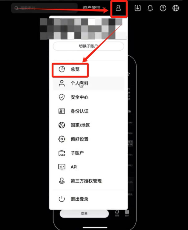我们进入主页之后,点击右上角的小人头,点击【总览】。