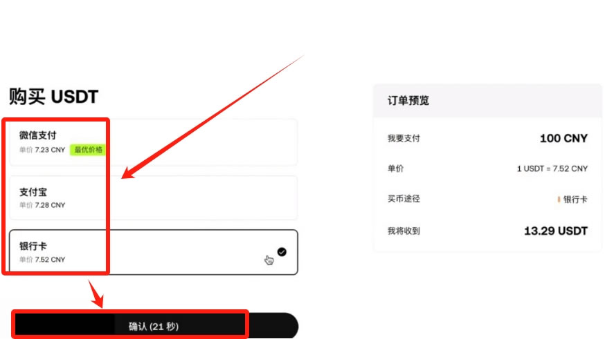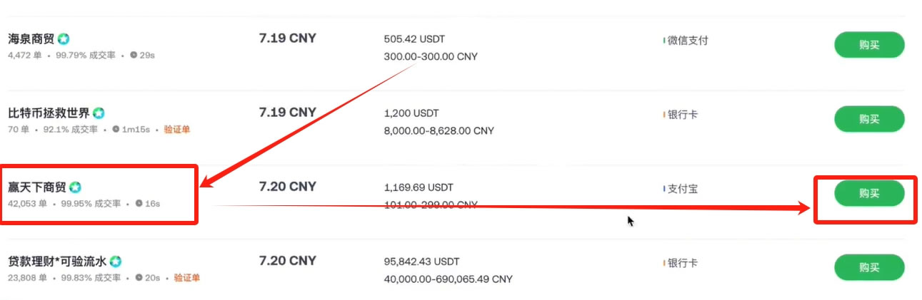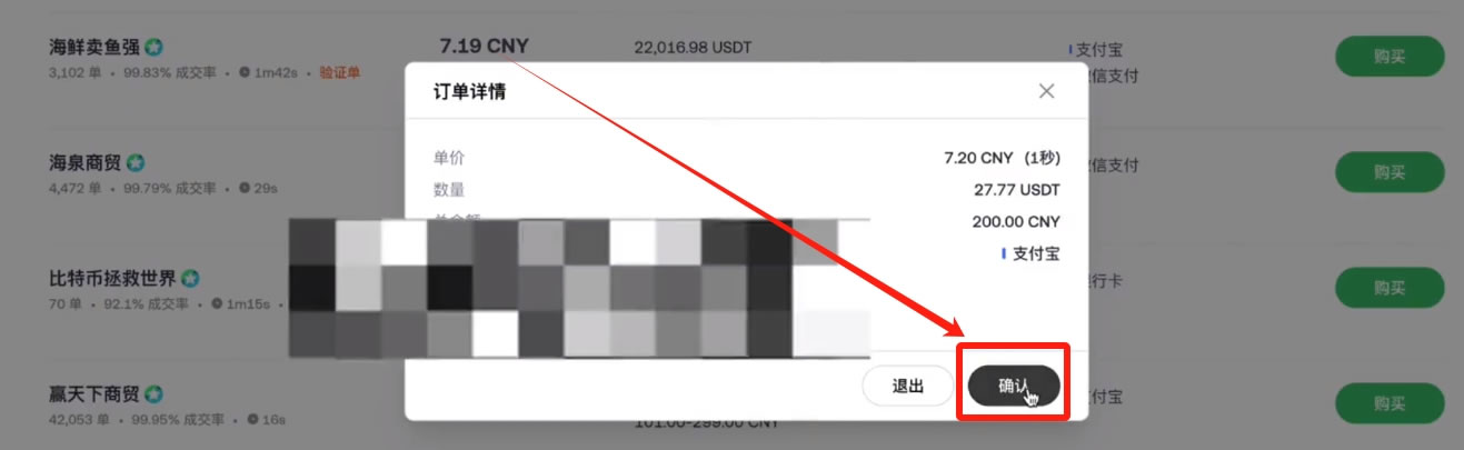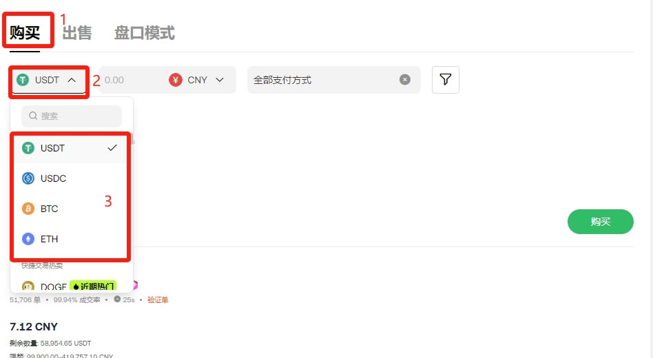“购买”指的是我们使用人民币去购买加密货币USDT。