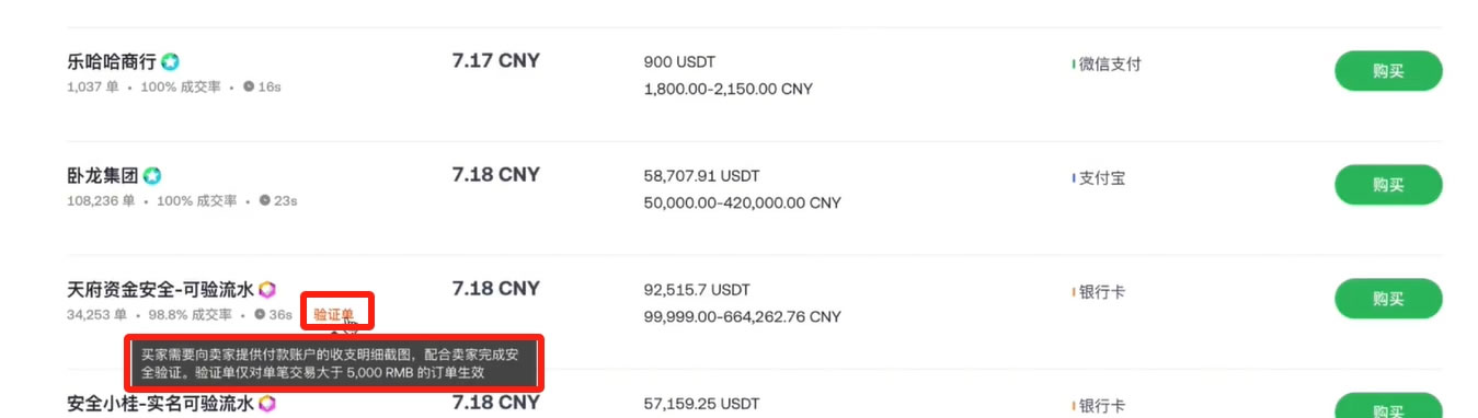 为什么会有验证单呢?也是因为很多商家怕收到黑钱,要看一下每个买家之前账户的流水明细做一下判断。这个地方大家不用担心,如果我们是干净的钱,是我们自己的钱,直接截图给他就可以了。