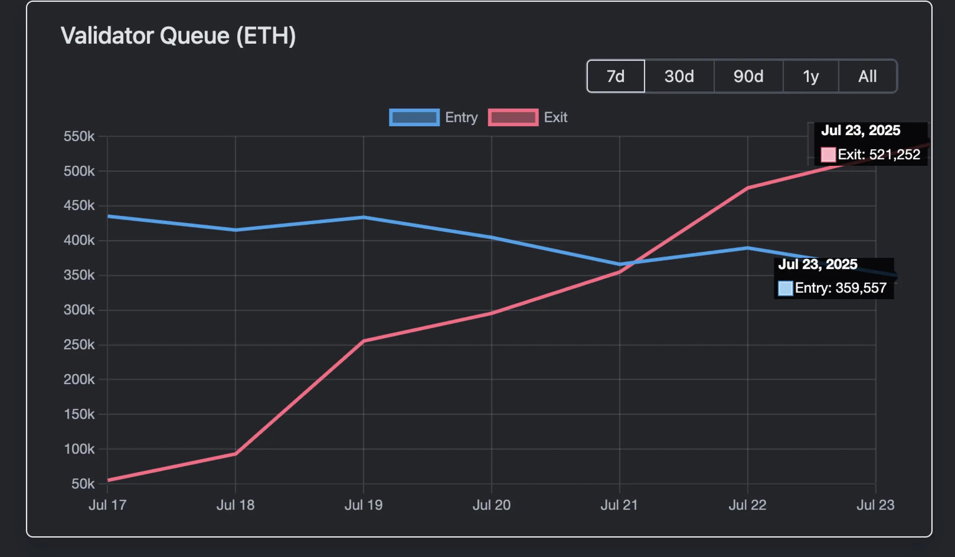 以太坊网络的验证者们,正在排队解除质押ETH。