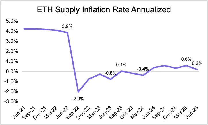 与美元等法定货币(其M2货币供应量年均增长率超过6%)相比,以太坊的结构性约束(以及潜在的通货紧缩)增强了其作为价值储备资产的吸引力。值得注意的是,以太坊的最大供应量增长率目前已与黄金相匹敌,甚至略低于黄金,这进一步巩固了其作为稳健货币资产的地位。