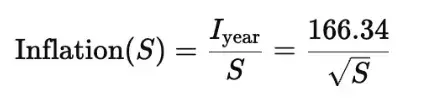 ETH 的发行量与质押的 ETH 数量动态相关。虽然发行量会随着质押参与度的提高而增加,但这种关系是亚线性的:通胀率的增长速度低于质押总量的增长速度。这是因为发行量与质押的 ETH 总量的平方根成反比,从而对通胀产生了自然的调节作用。