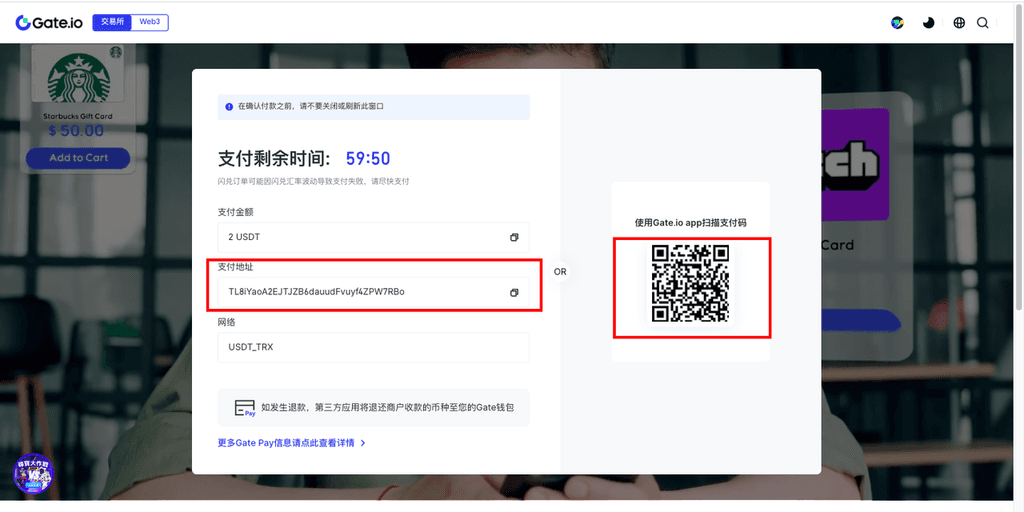可将收款码发送给付款方,付款方用Gate APP 扫码,可获取固定的付款金额。
