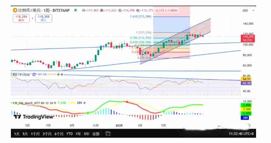 近期,加密货币市场进入了震荡整理阶段。比特币(BTC)的技术指标显示出一些偏空信号,MACD指标有下穿的迹象,但在11.2万美元附近存在短期支撑。如果价格没有有效跌破这一支撑位,预计将维持在一定区间内波动。如下图所示: