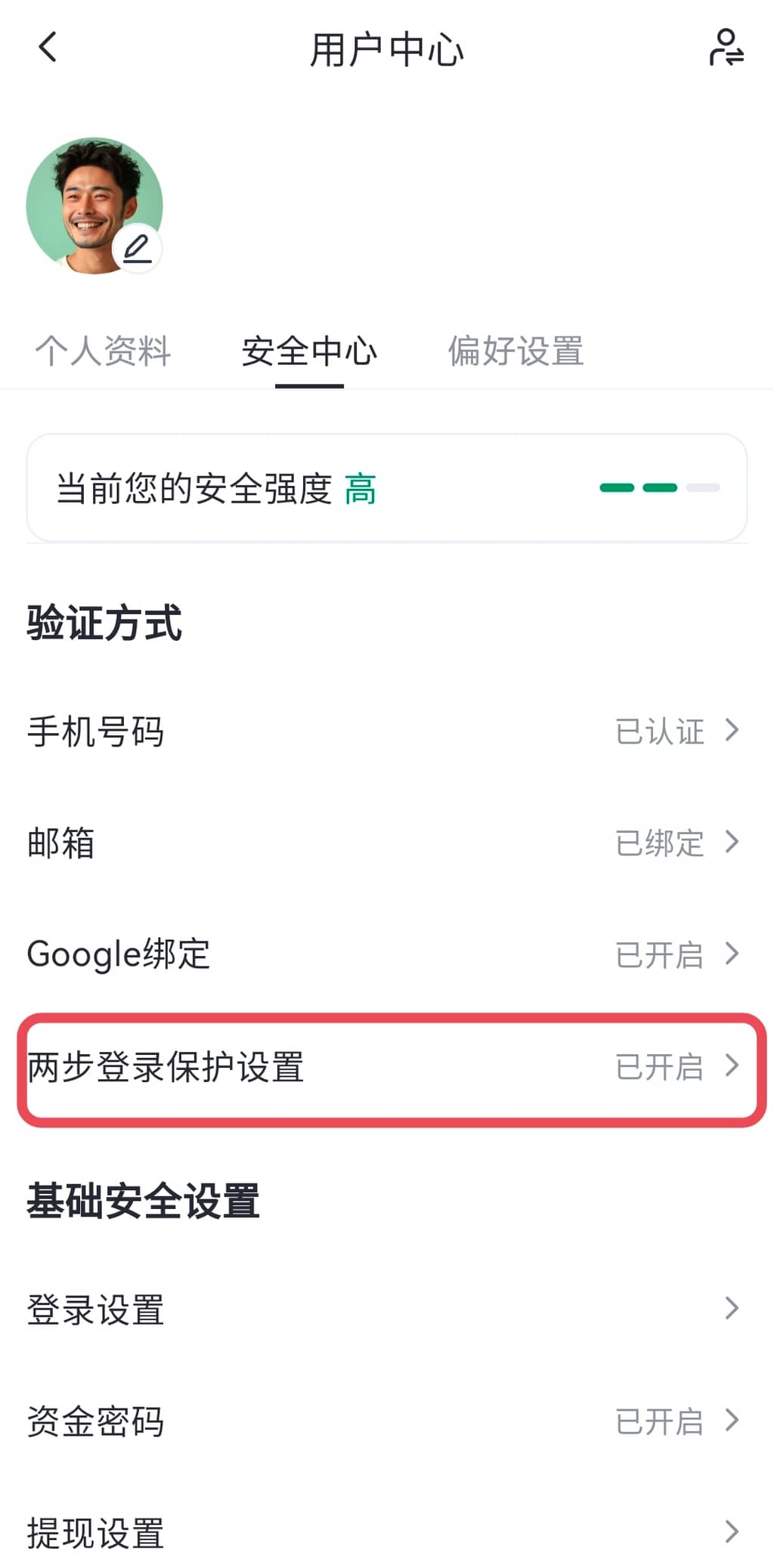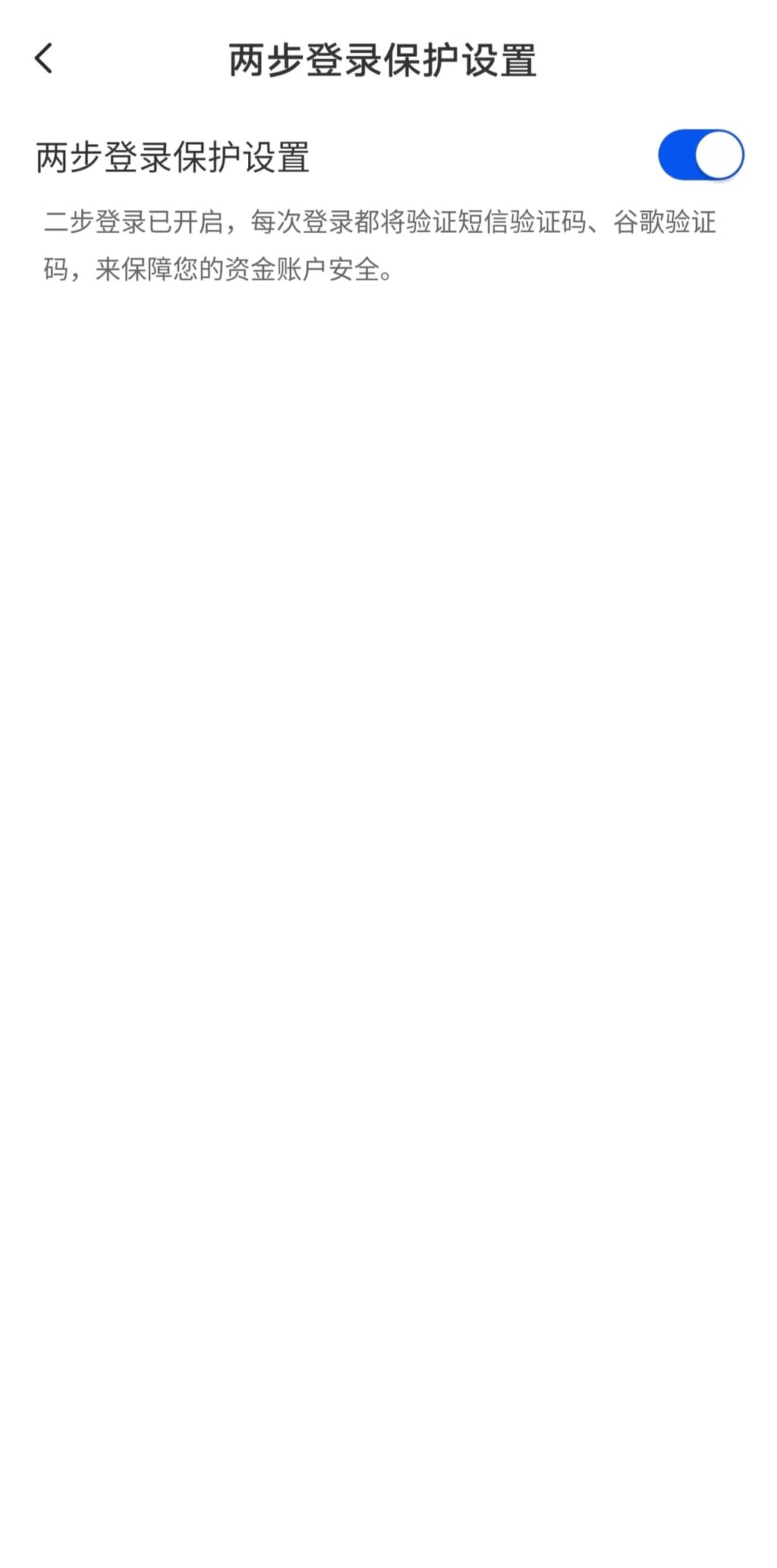两步登录保护可以为您的交易提供更为安全的登录防护。在启用二次验证功能前,您需要绑定手机号码、谷歌/Gate验证器或邮箱。在您选择开启两步登录保护后,每次登录账户必须输入手机短信验证码或谷歌/Gate验证码(GA/TOTP)或邮箱验证码才能通过验证。两重防护,保障您的登录安全。