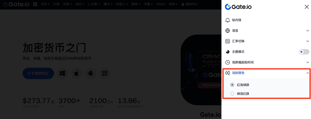 K线涨跌幅起始时间可在Web端右上角进行设置和切换。