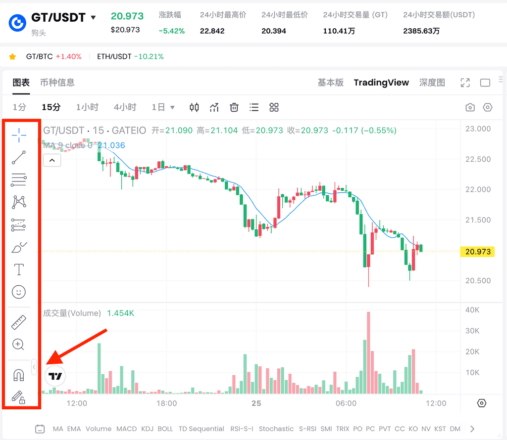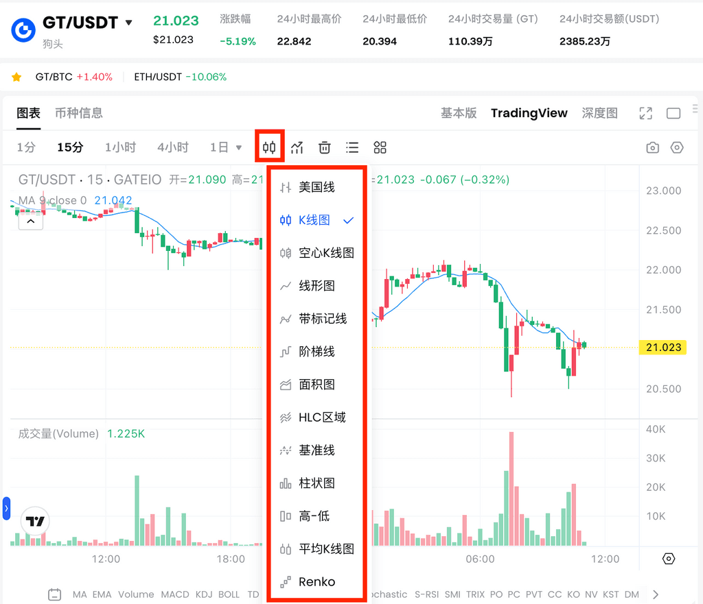 4、K线图样式更改以及绘图工具栏介绍