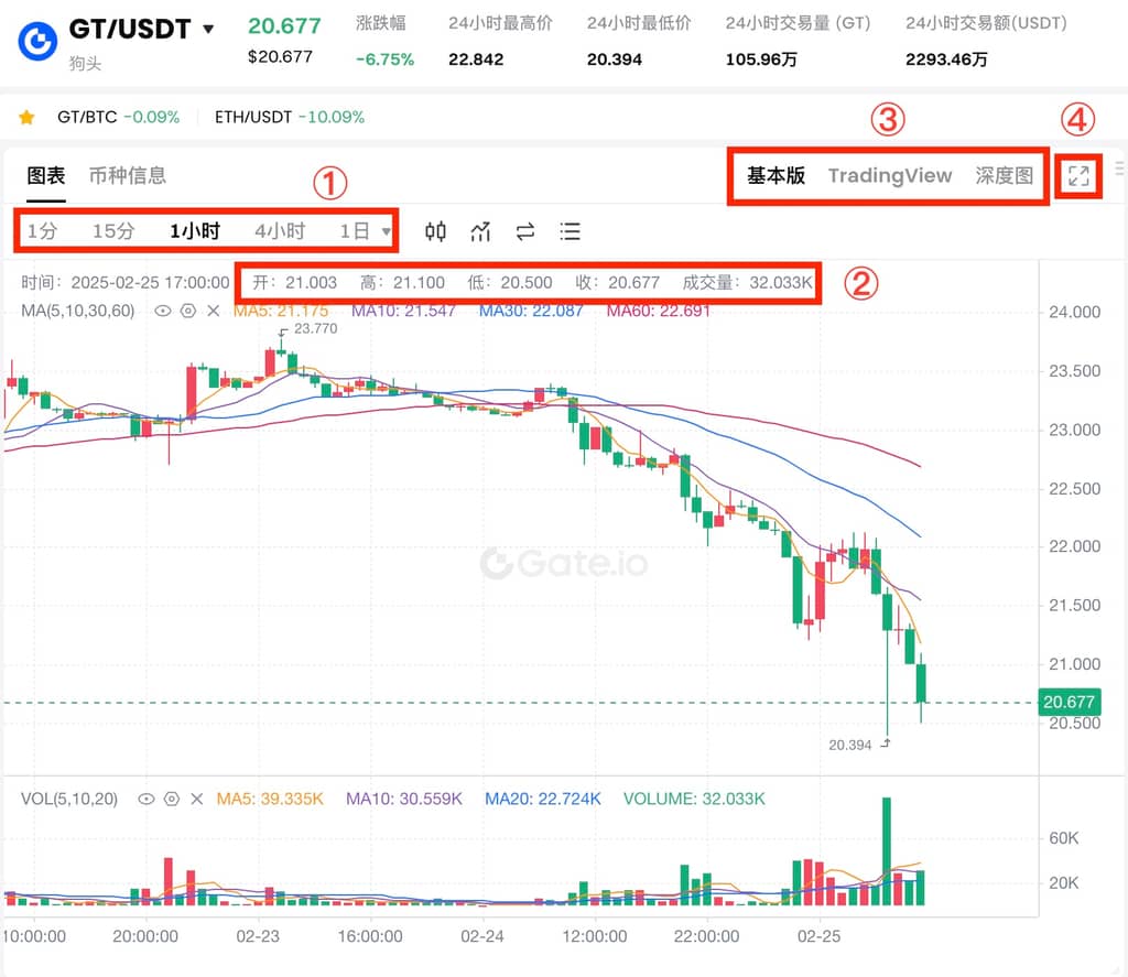 1、K线图各数值参数以及功能介绍: