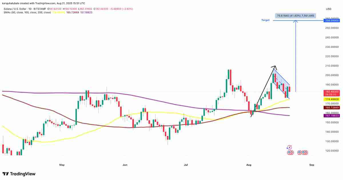 索拉纳图表显示260美元SOL为潜在目标