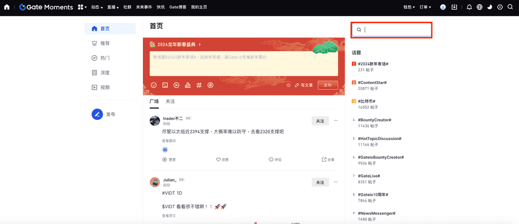 1、登录Gate个人账户——点击导航栏“币圈”——“动态”。
